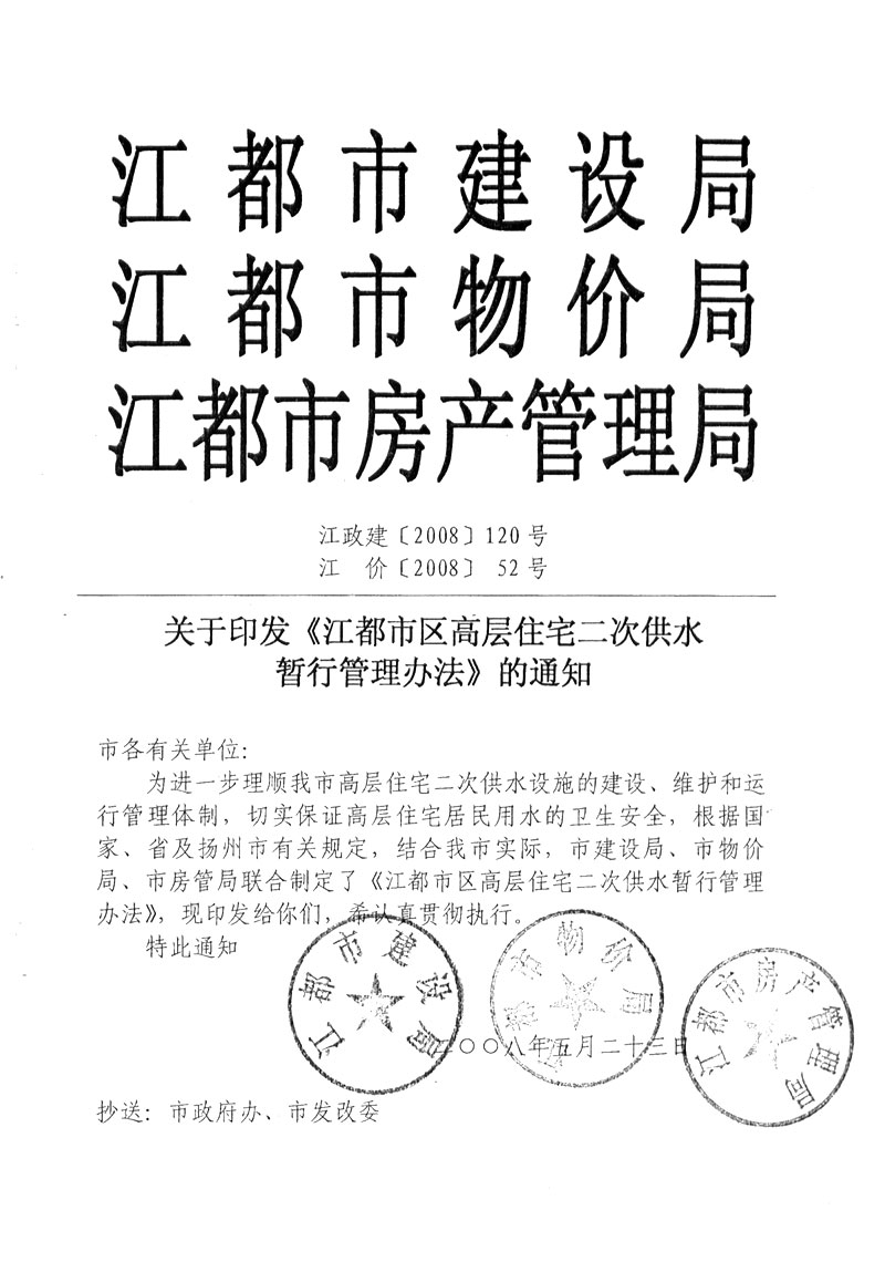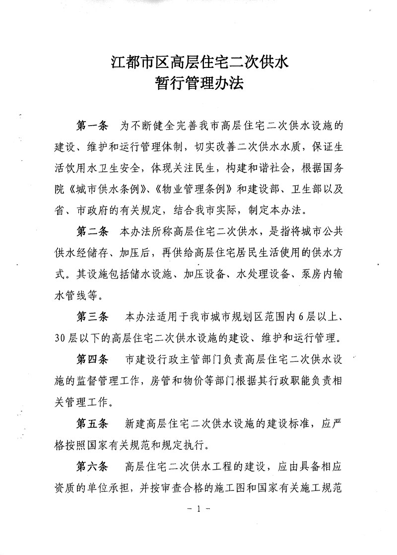 江都城區高層住宅二次供水暫行管理辦法