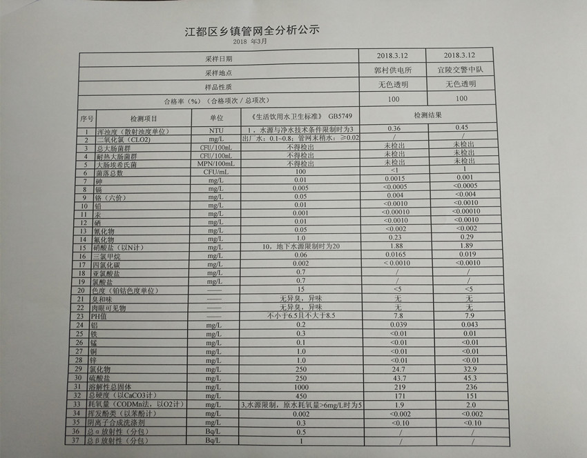 水質(zhì)公示