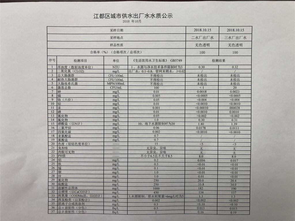 水質(zhì)公示