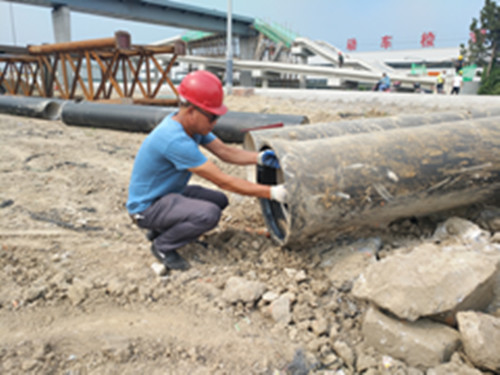 正值三伏天,雖然高溫熱浪襲人,也阻擋不了城市供水人鋪設供水管道的進程。在老淮江路雙徐路至華山路拓寬改造現場,龍川控股水務有限公司的安裝人員嚴慶章,正忙著鋪設自來水管道,汗水從額頭滾落下來,眼睛被迷糊了,順手一抹,手中的活沒停。汗衫被汗浸濕得像從水里剛撈上來似的。