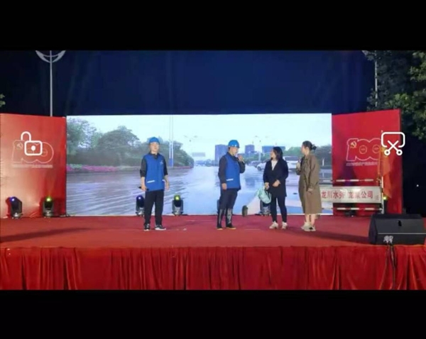 我公司應(yīng)邀參演,為現(xiàn)場(chǎng)觀眾精彩演繹了一則情景劇,該劇以小見(jiàn)大,講述了數(shù)九寒冬,水管突然爆裂導(dǎo)致居民無(wú)水可用。龍泉公司維修處工作人員接到通知,不畏嚴(yán)寒,盡心盡力堅(jiān)守?fù)屝抟痪,直至管道搶修成功,恢復(fù)供水,得到居民稱贊的故事。此情景劇由龍川水務(wù)員工編排演繹,向廣大群眾充分展示了水務(wù)員工良好的精神風(fēng)貌和進(jìn)取精神