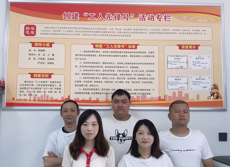圖為龍泉公司生產(chǎn)經(jīng)營(yíng)辦公室全體成員在創(chuàng)爭(zhēng)專欄前合影