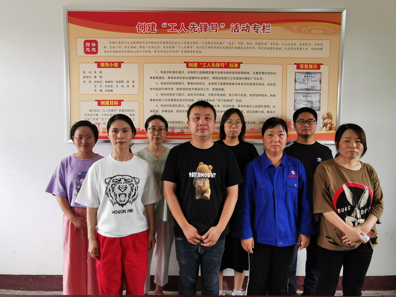 圖為污水公司邵伯油田污水廠全體成員在創(chuàng)爭(zhēng)專欄前合影