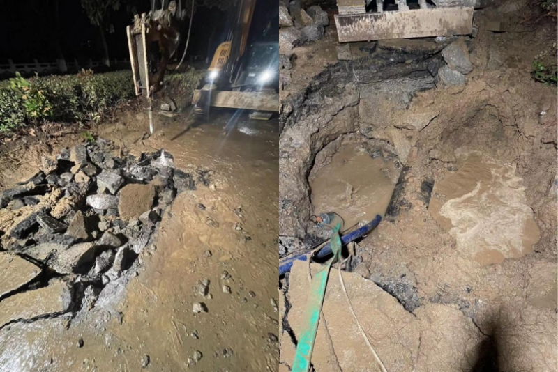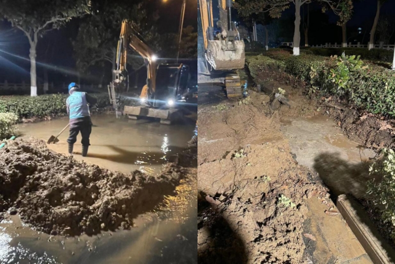 2023年1月25日,大年初四下午4點,當大家還沉浸在新年的節(jié)日氛圍,在走親訪友時,在做待客的晚飯準備時,龍泉公司接到群眾反映,江都橋北道路由于氣溫驟降的原因導致DN600主管發(fā)生爆裂,嚴重影響到附近居民供水安全以及道路安全,接到反映后,值守經(jīng)理韓春暉同志、項目部經(jīng)理夏陽華同志果斷部署,搶修班組迅速響應、組隊,趕往現(xiàn)場。