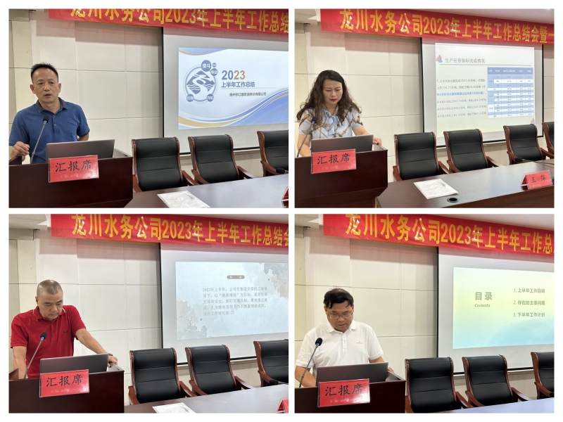 會議分別聽取了計劃財務部、運營技術部、客戶服務部、自來水公司、惠民區域供水公司、龍泉建設工程公司、龍川污水處理公司等七個部門單位2023年上半年工作總結報告。上述各部門、子公司負責人分別圍繞上半年生產經營指標、重點工作完成情況、存在的主要問題、解決對策及下半年工作計劃作了匯報交流。