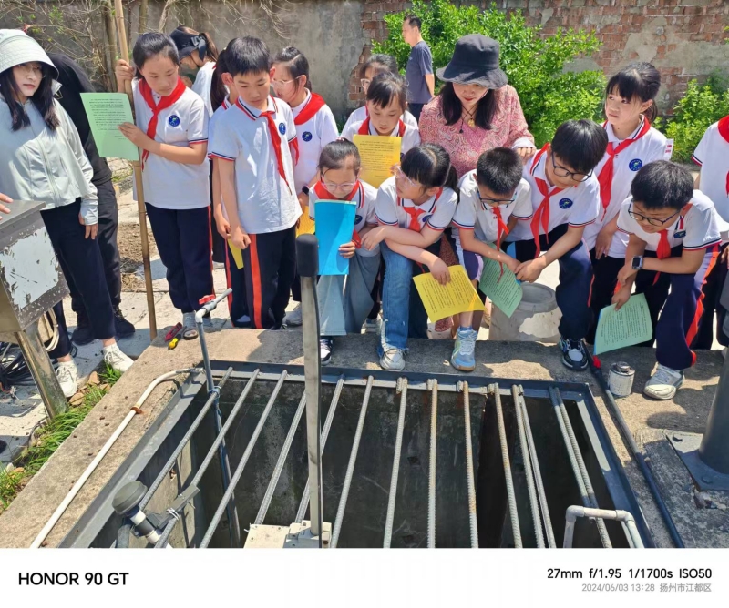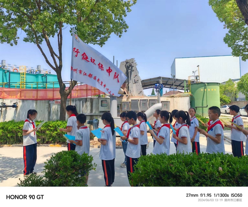 6月3日,江都區(qū)武堅(jiān)中心小學(xué)“行健環(huán)保中隊(duì)”來到我公司下屬武堅(jiān)污水處理廠,開啟了一場(chǎng)環(huán)保研學(xué)之旅。武堅(jiān)中心小學(xué)的校長(zhǎng)和孩子們一起,首先對(duì)污水廠的整體構(gòu)筑物進(jìn)行參觀,隨后他們緊跟廠區(qū)負(fù)責(zé)人張?zhí)礻枏S長(zhǎng)的步伐,深入污水處理一線,來到污水處理池組,從進(jìn)水泵房、厭氧池、曝氣池、一體化沉淀池、硝化及反硝化池組、消毒池直到出水口,通過看水的顏色、聞水的氣味,激發(fā)了孩子們滿滿的好奇心,提出了一系列疑問“污水是從哪里來的?”“污水怎么變清澈了?”“處理后的污水又去了哪里?”面對(duì)孩子們的好奇心,張?zhí)礻枏S長(zhǎng)都一一做出詳細(xì)且易懂的解答,并提出要一點(diǎn)一滴珍惜水資源,保護(hù)好我們的生態(tài)環(huán)境。最后,孩子們紛紛來到中控室,觀看運(yùn)營操作師傅遠(yuǎn)程操控污水設(shè)備,孩子們感嘆遠(yuǎn)程操作技術(shù)的神奇之余,也深刻體會(huì)到了污水處理工作的艱辛與不易。