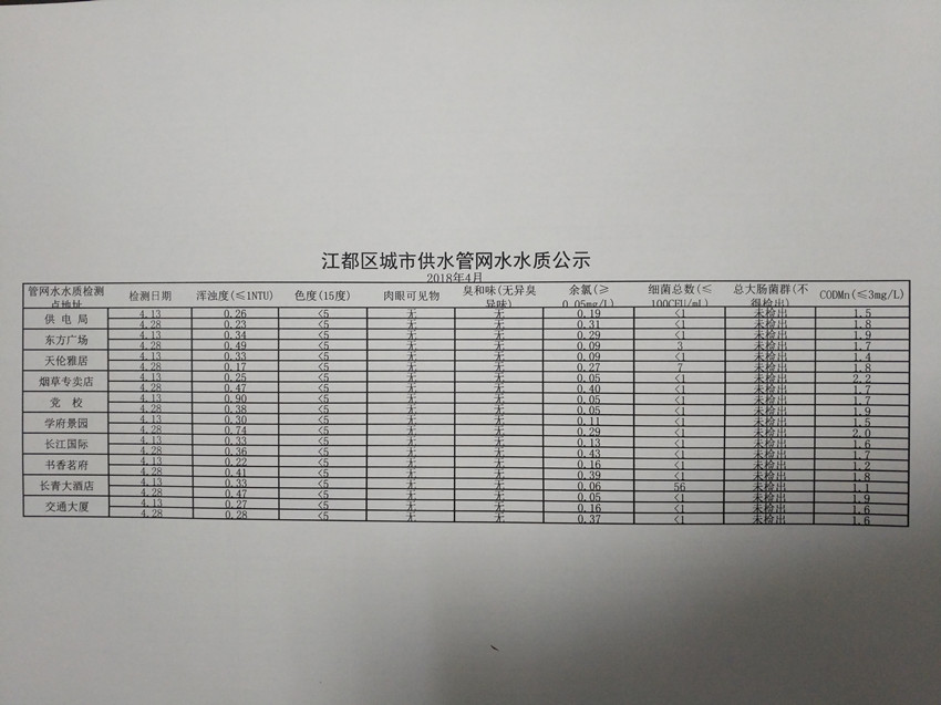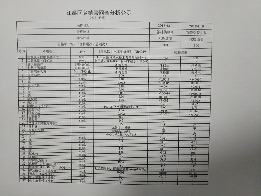水質(zhì)公示